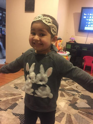 She is now in the maintenance cycle of her treatment which will continue for over a year, but her hair is coming back in. Wearing your headbands over the little hair she has gained over he last few months makes her feel even more like a princess.