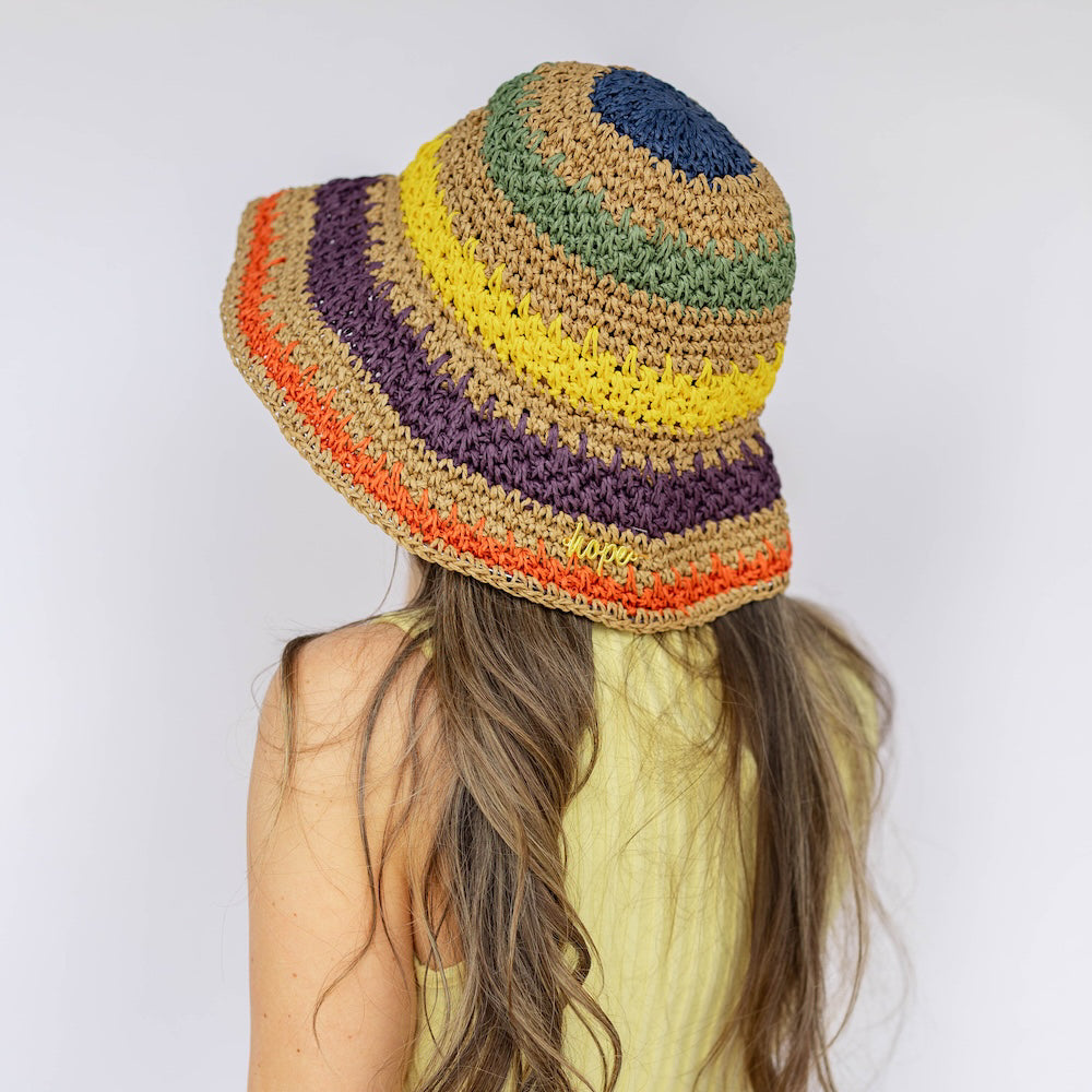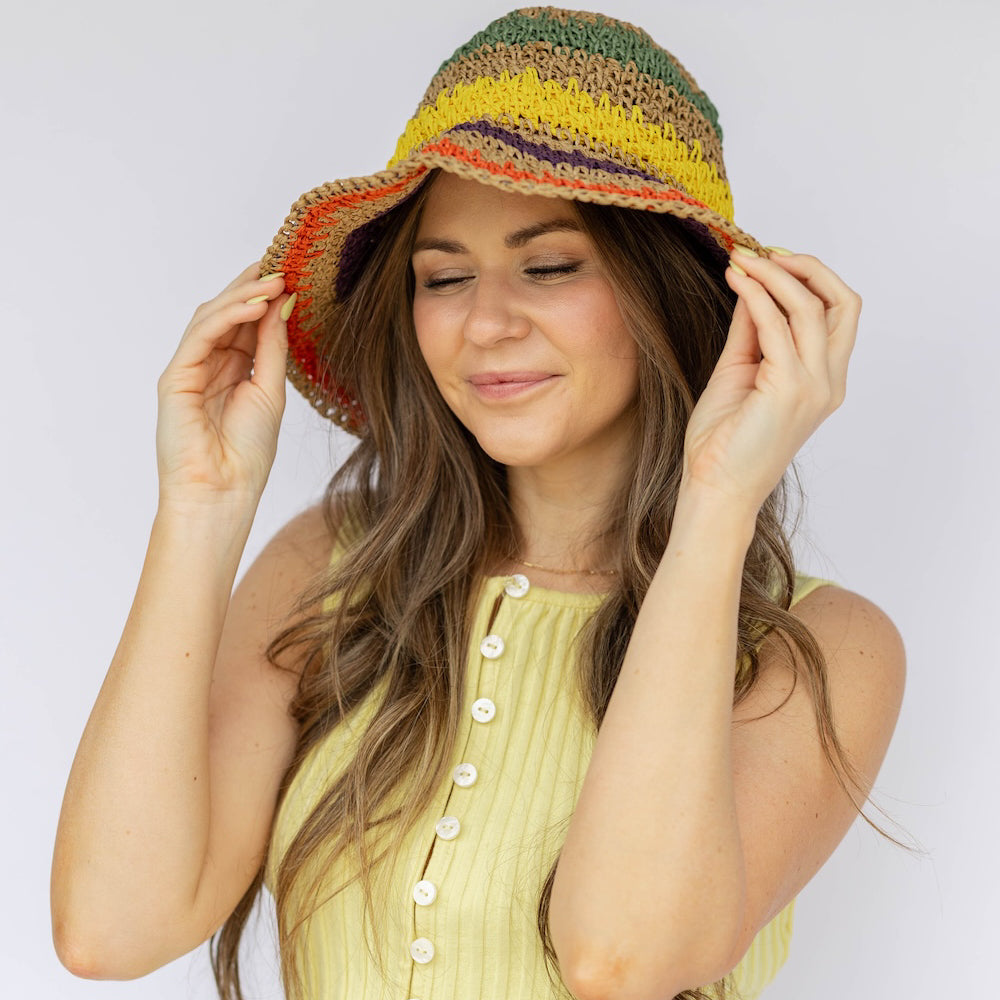 Sunshine called, this is what you wear. The Rainbow Raffia Woven Bucket Hat brings color, texture, and just the right amount of personality to every outfit. Throw it on, bend the brim how you like, and you are instantly in vacation mode.