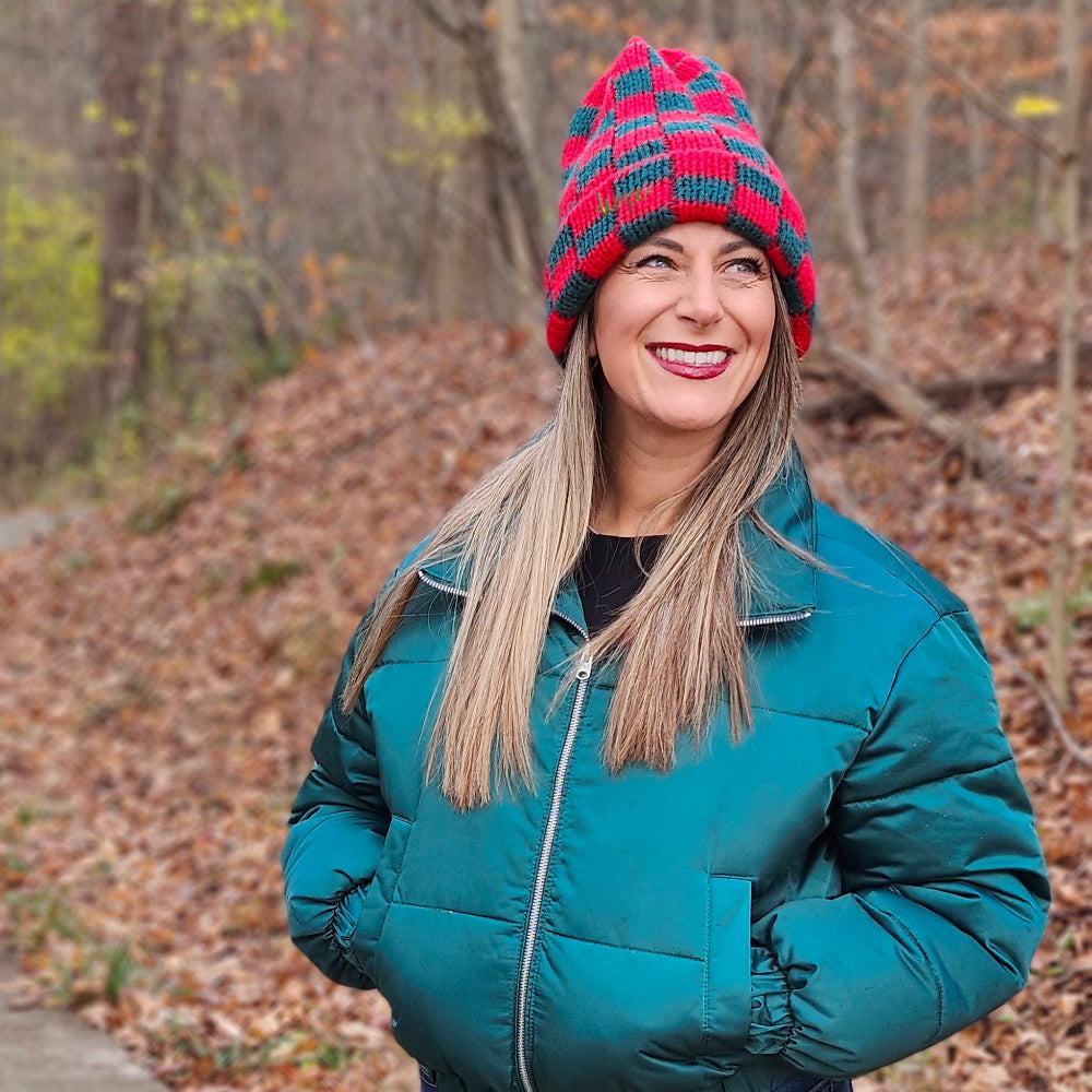 Festive, bold, and instantly joyful. This red and green checkerboard knit beanie brings a playful twist to cold weather styling. The soft knit feels cozy without being bulky, and the foldover cuff creates a snug, comfortable fit. The “hope” detail adds a meaningful touch that makes your winter look feel even warmer.