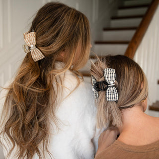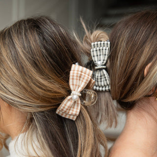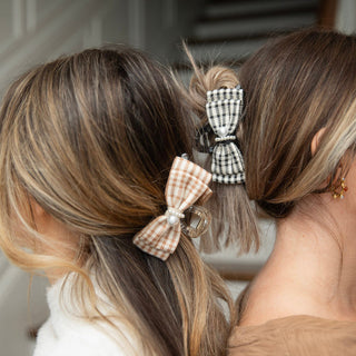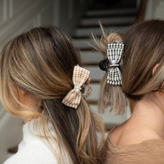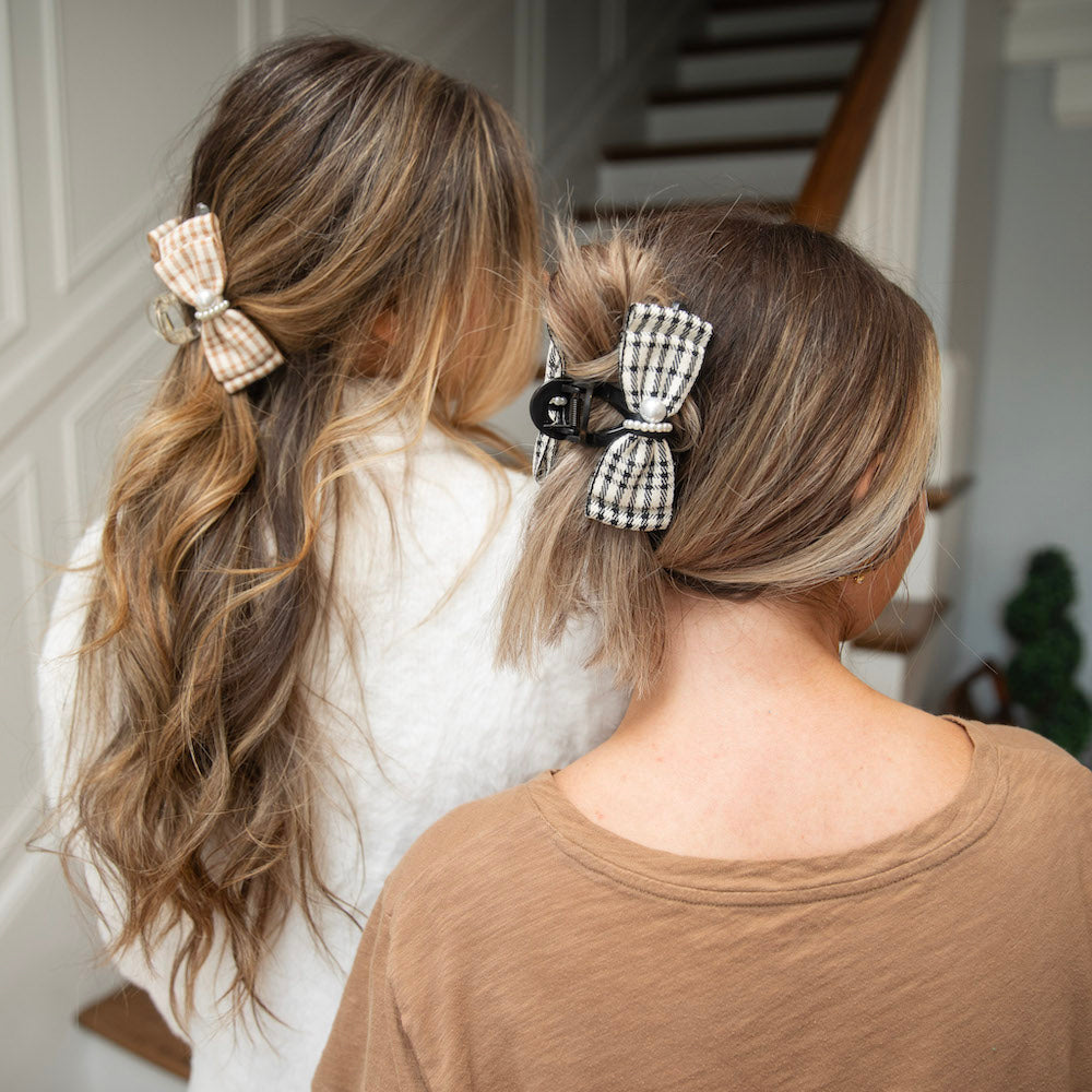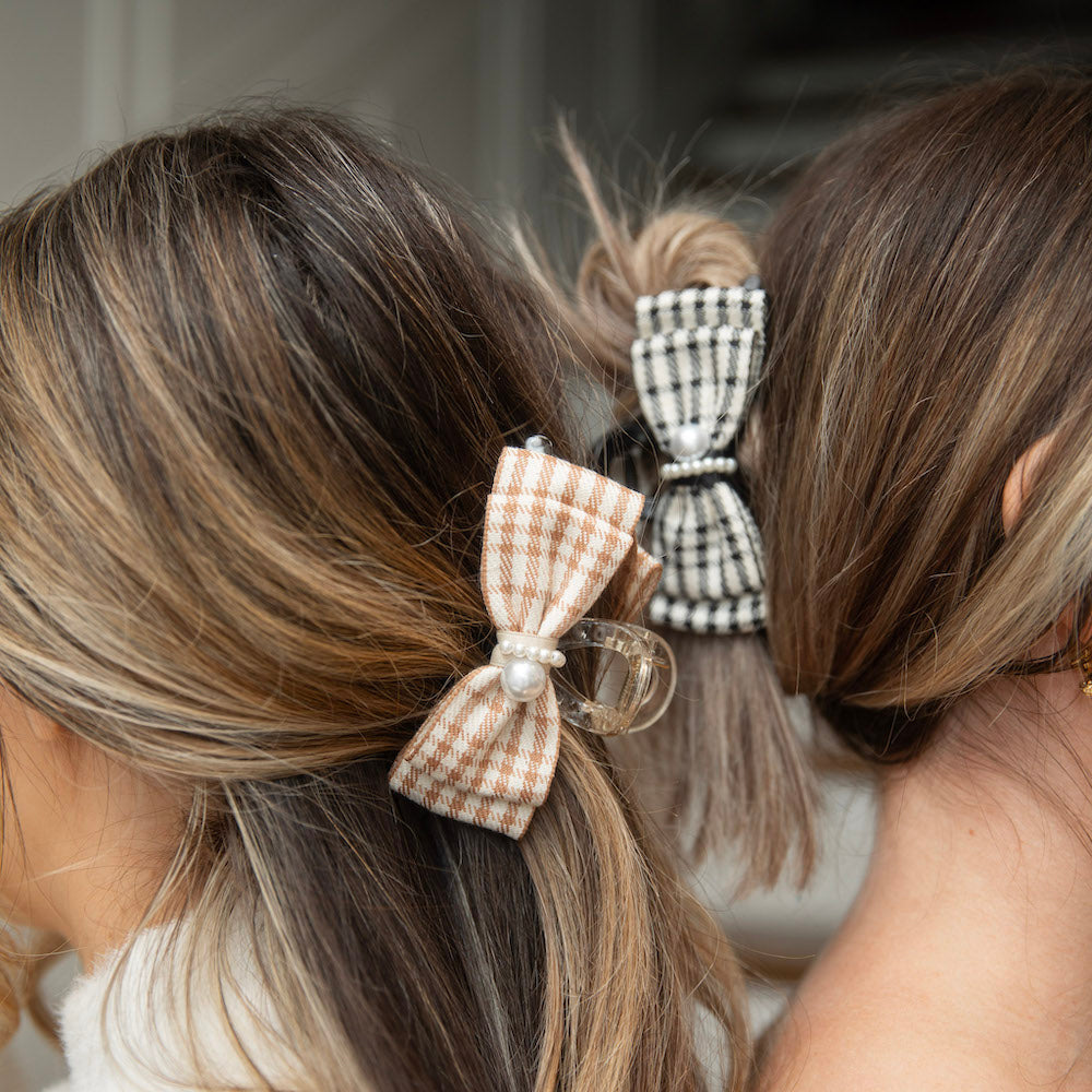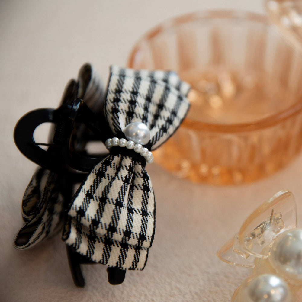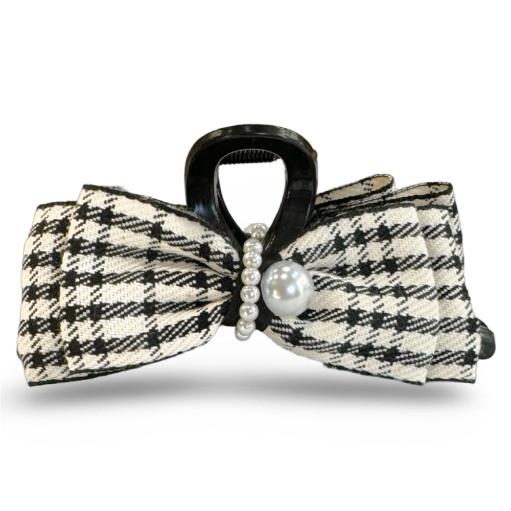 Unleash your inner Blair Waldorf with this preppy large clip featuring black checkered and pearl details. Perfect for thick or curly hair, this statement piece will elevate any outfit. (Channel your inner queen B with this plaid and pearl clip - great for even the thickest or curliest hair!)