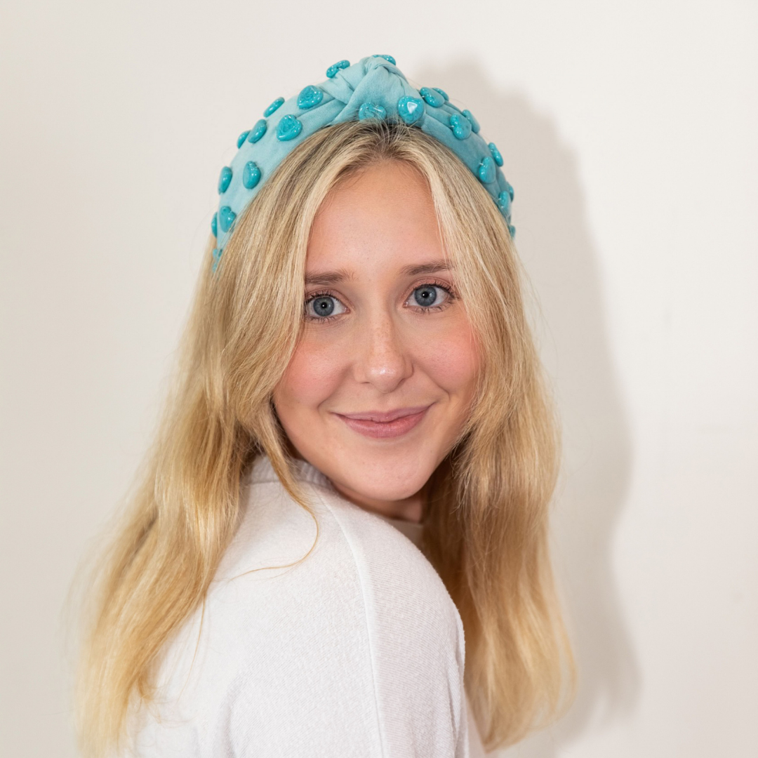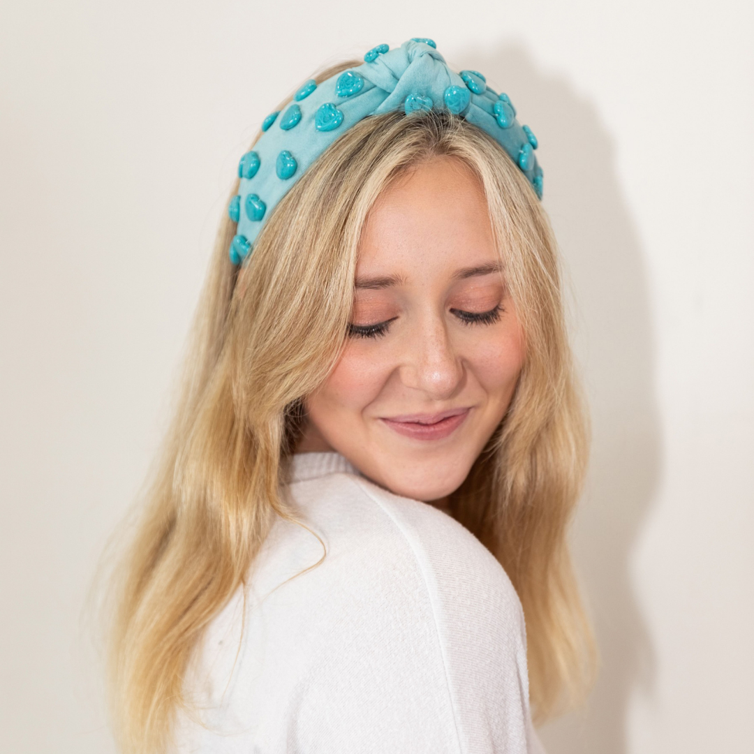 Our Stone Quartz Traditional Knot Headband is not your average headband. Hand sewn with love, it has a unique, heart-shaped stone design combined with a luxurious blue velvet fabric, making it the perfect accessory for any special occasion. You won't believe the style and sophistication you'll have wearing our exquisite piece. What will you pair it with?