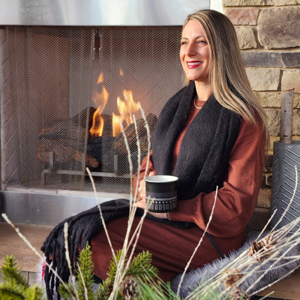 Sleek, soft, and effortlessly elevated. This black winter scarf adds a refined layer of warmth to any cold weather look. The plush texture feels luxe without the weight, while the long silhouette and bold fringe trim create movement and comfort. A timeless essential that pairs beautifully with coats, knits, and everyday layering.