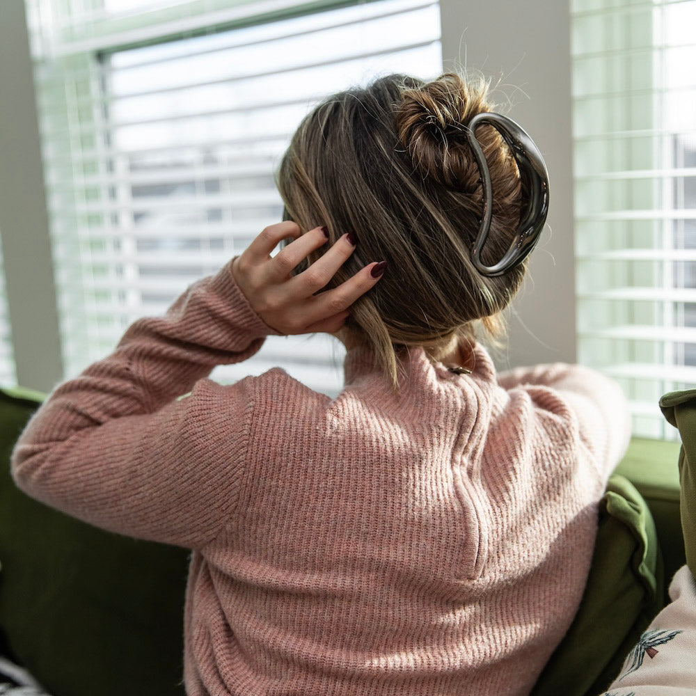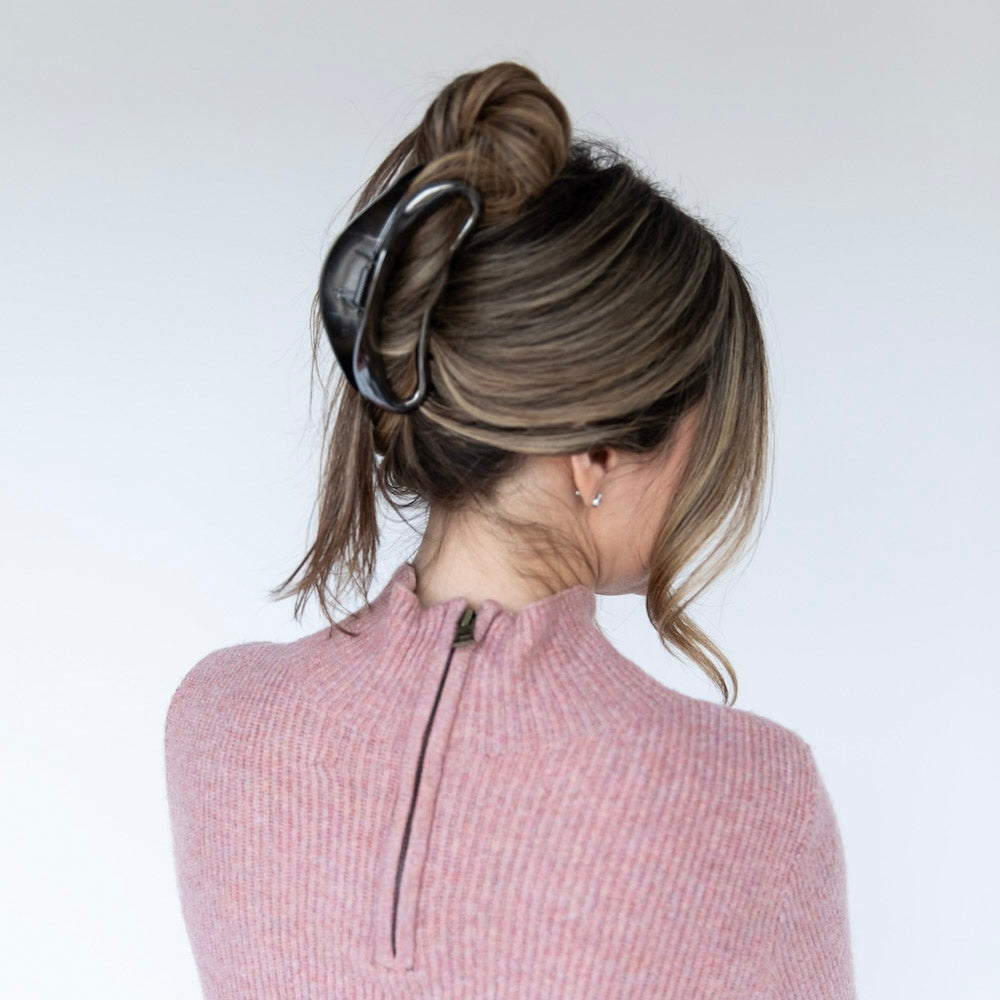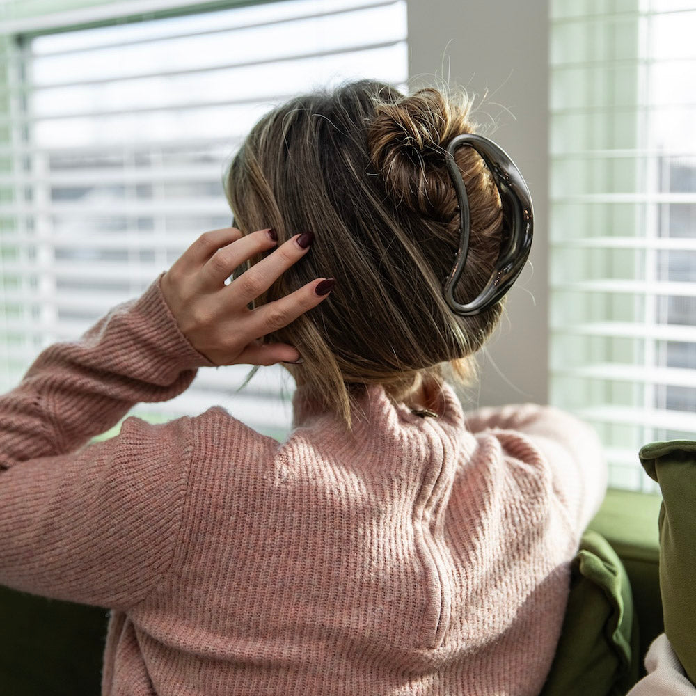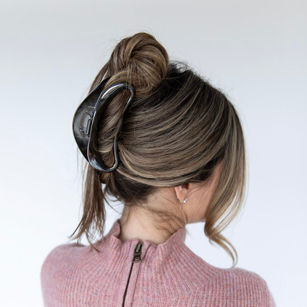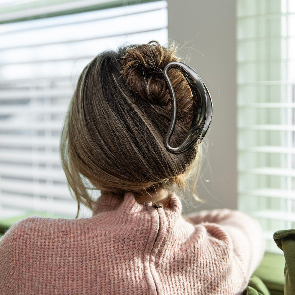 Bold, versatile, and endlessly wearable. This black crescent metal claw clip brings a refined edge to everyday styling with its sculptural shape and sleek finish. Designed to hold hair comfortably and securely from day to night.