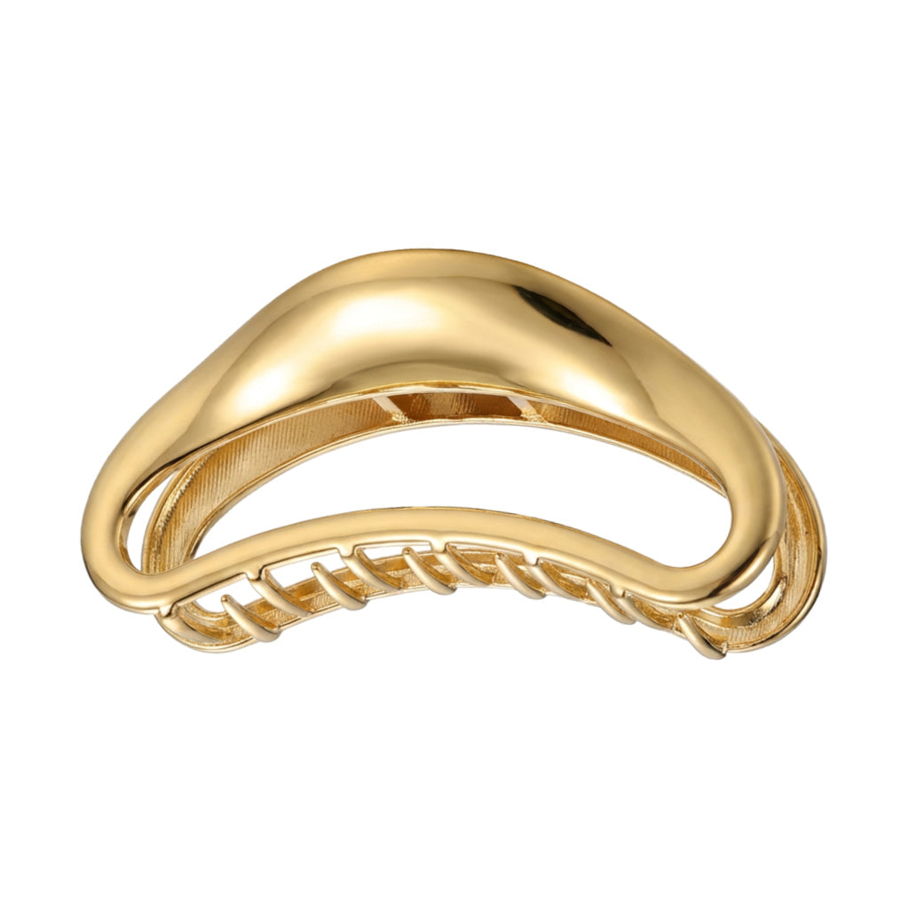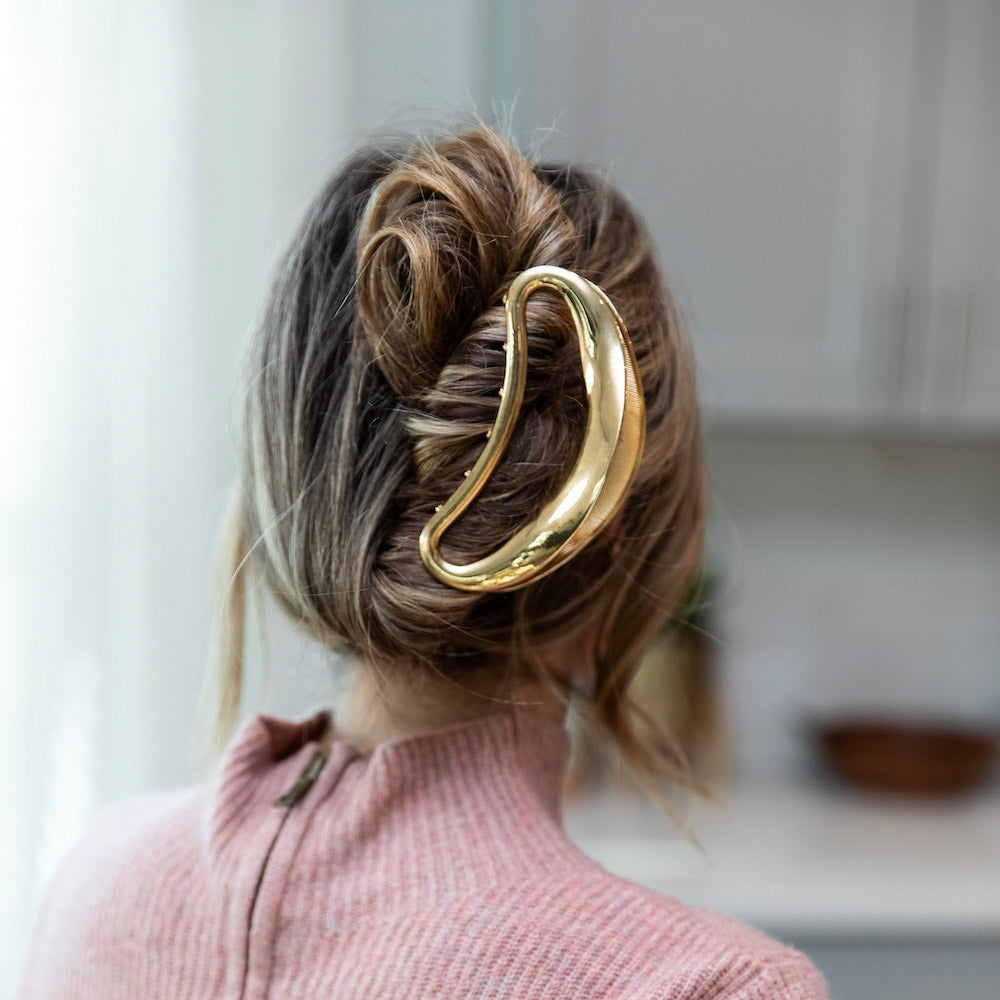 Sleek, sculptural, and effortlessly polished. This gold crescent metal claw clip elevates everyday hairstyles with a modern curved silhouette and a high-shine finish. Designed to hold securely without pulling, it adds an instant touch of affordable luxury to buns, twists, and half-up styles.