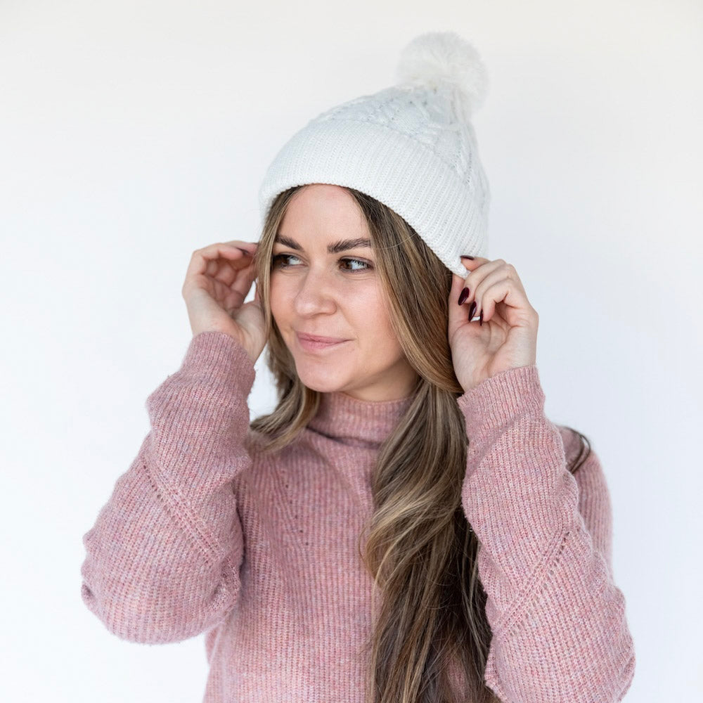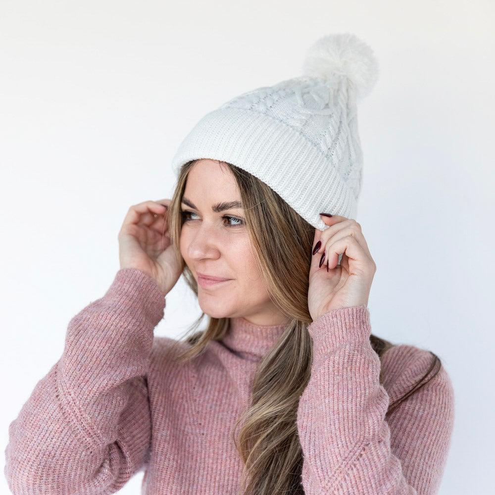 Cable Knit Pom-Pom Beanie - Ivory