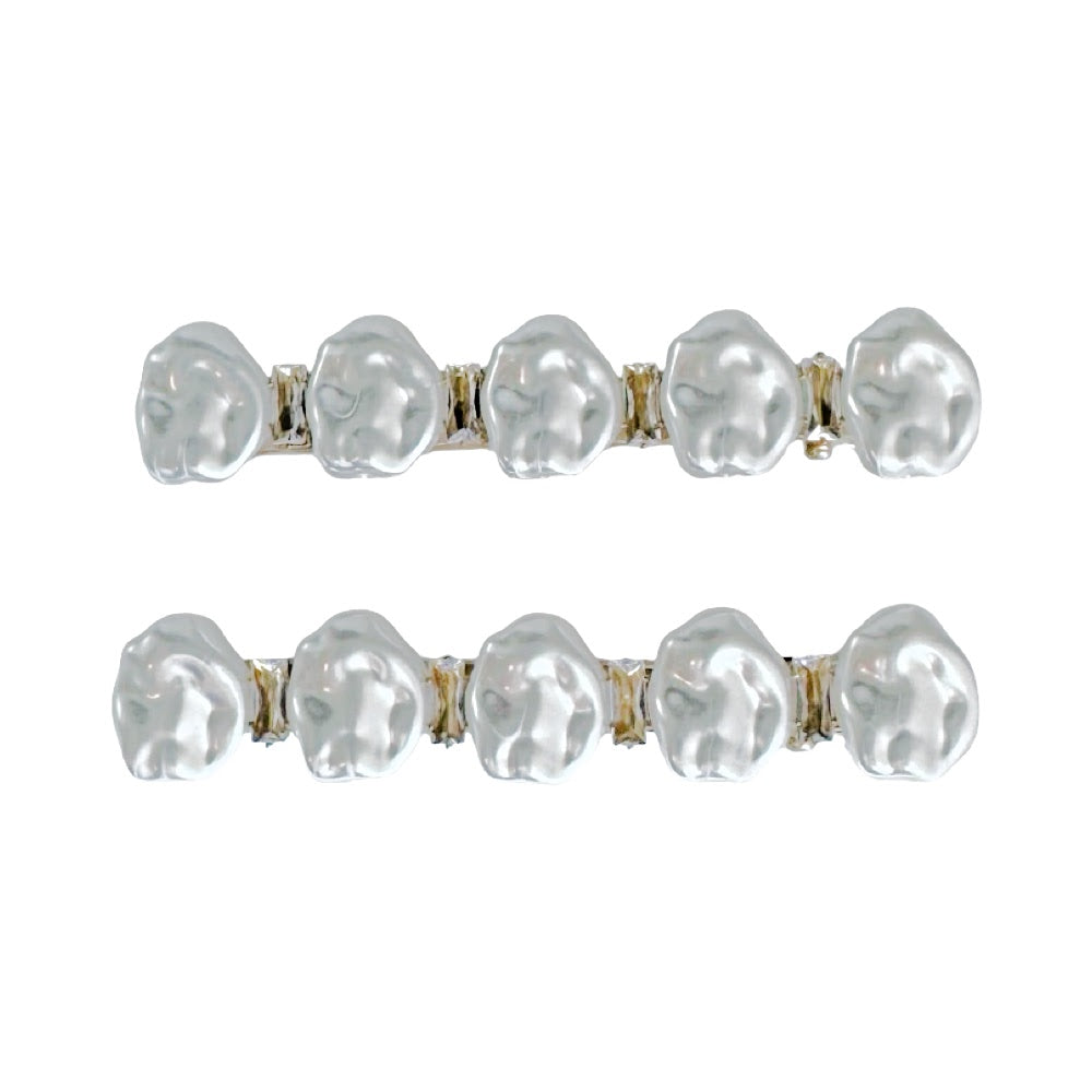 Understated elegance, every single day. The Pearl White Barrette Hair Clip Set brings lustrous faux pearls and sparkling rhinestone accents together on a sleek gold-tone base. Wear one, wear both- either way, it looks intentional.