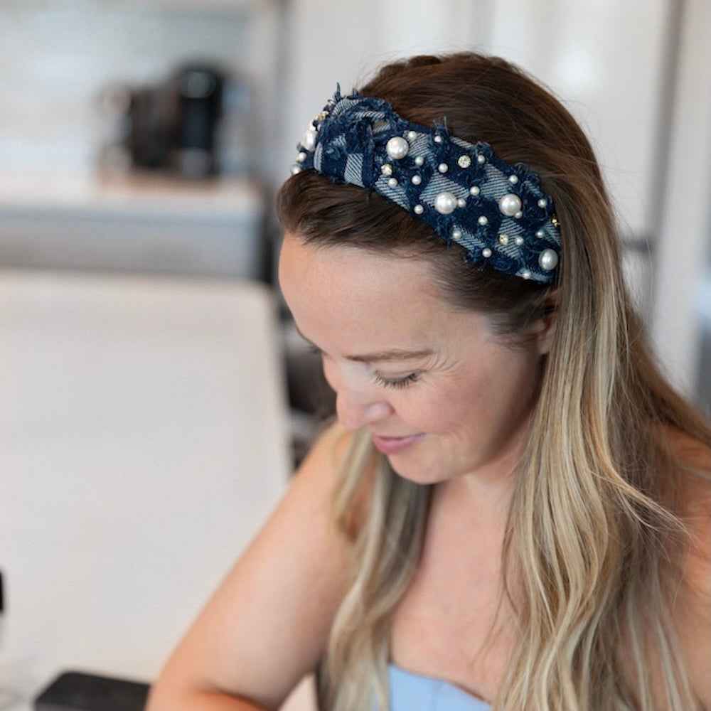 Lightweight yet structured, the Patchwork Denim Embellished Top Knot Headband balances comfort with design. Crafted for balance, it merges style with comfort. Designed to move between casual afternoons and evenings out. Versatile enough to wear on repeat.