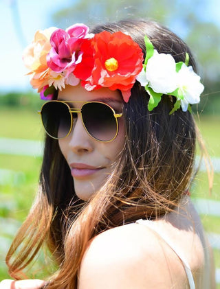 Luce un look romántico y glamoroso usando diademas con algunos detalles delicados como flores . Añaden una dulce nota de feminidad y calidez. Estas bandas lucen mejor en la parte superior de la cabeza, incrustadas en el cabello suelto.