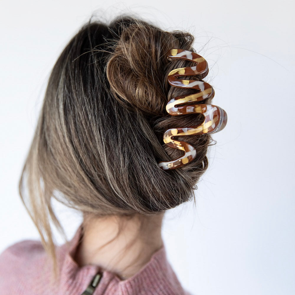 Large Luxe Wavy Claw Clip – Caramel Marble
