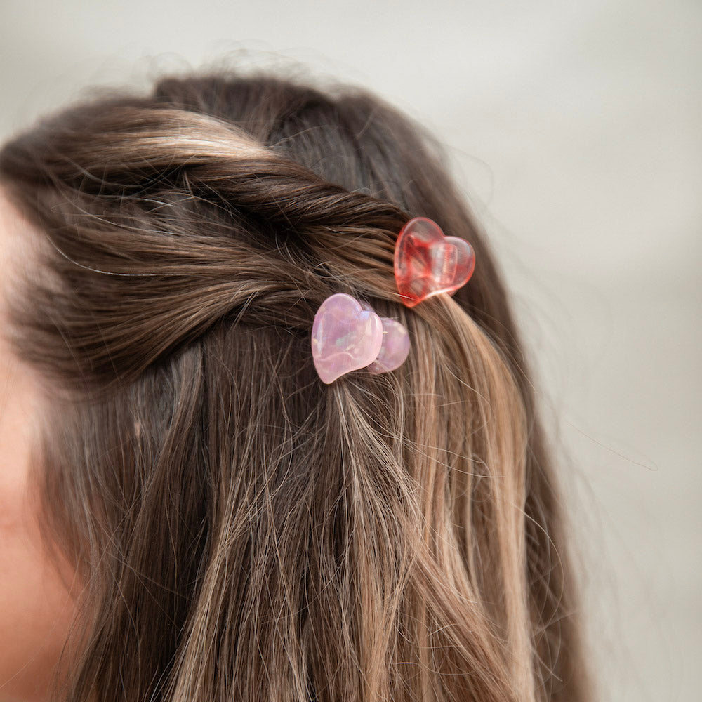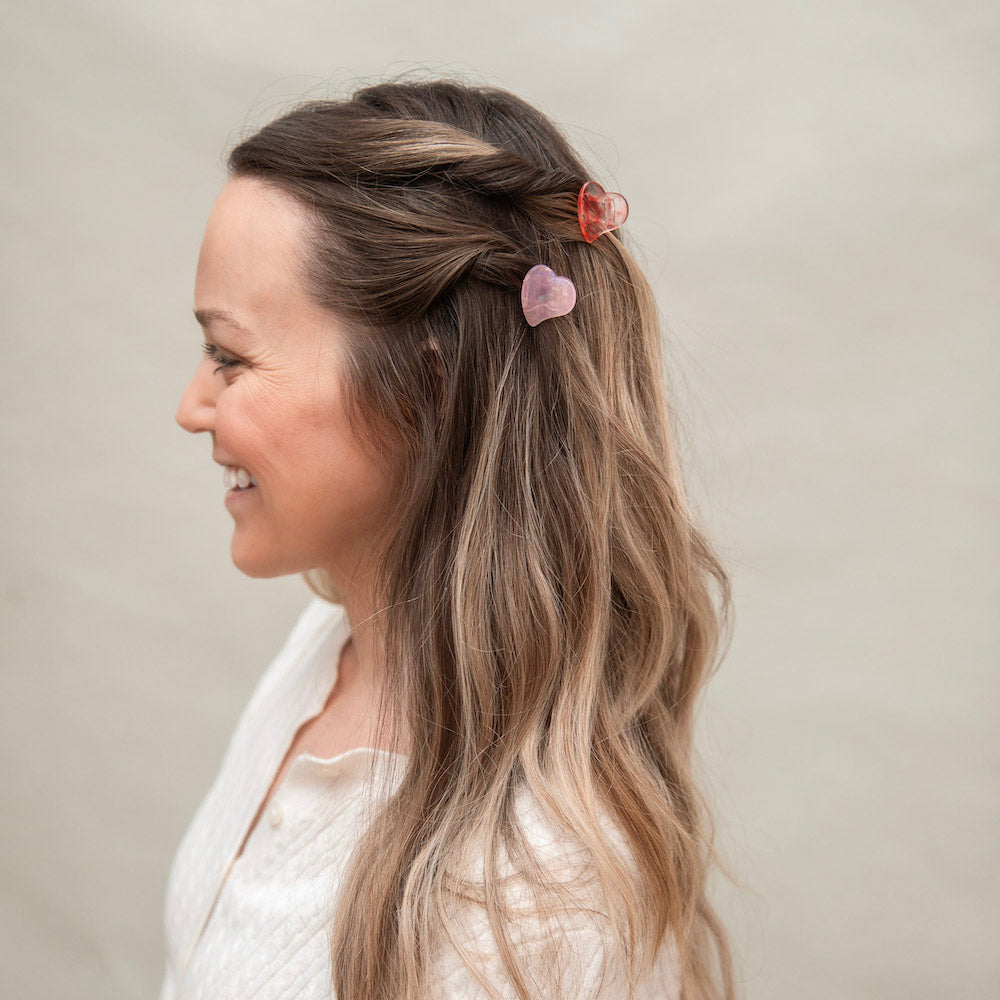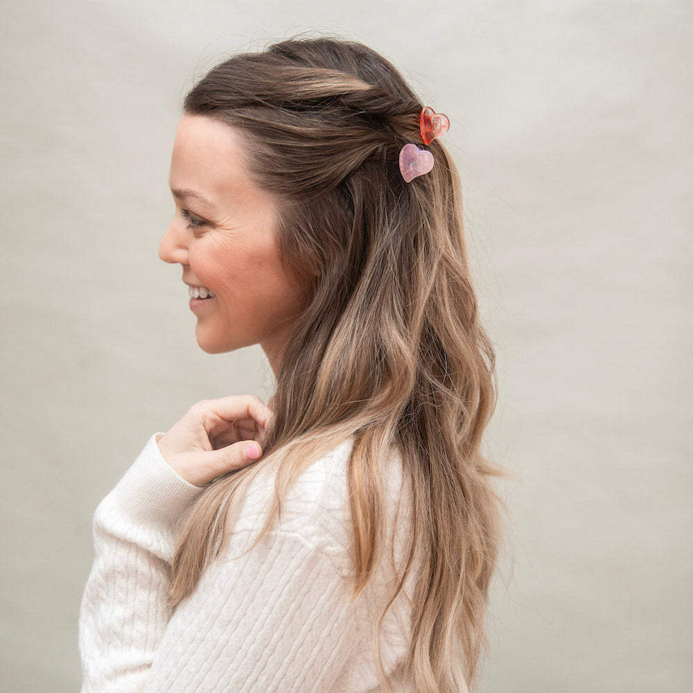 Elevate your hair game with our Mini Heart Clip Set in Red and Pink! These mini claw clips are perfect for those with fine hair and little ones. With a touch of love in every clip, show off your affection for style.