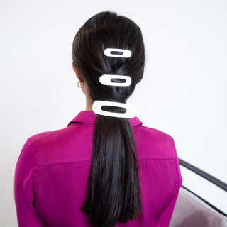 Transform your hair routine with our Cream Mixed Size Flat Lay Clip Set! These clips come in small, medium, and large sizes, making it easy to create trendy looks. Bid farewell to damaged and uncomfortable hair during car rides. Make a stylish statement while keeping your hair safe and healthy..