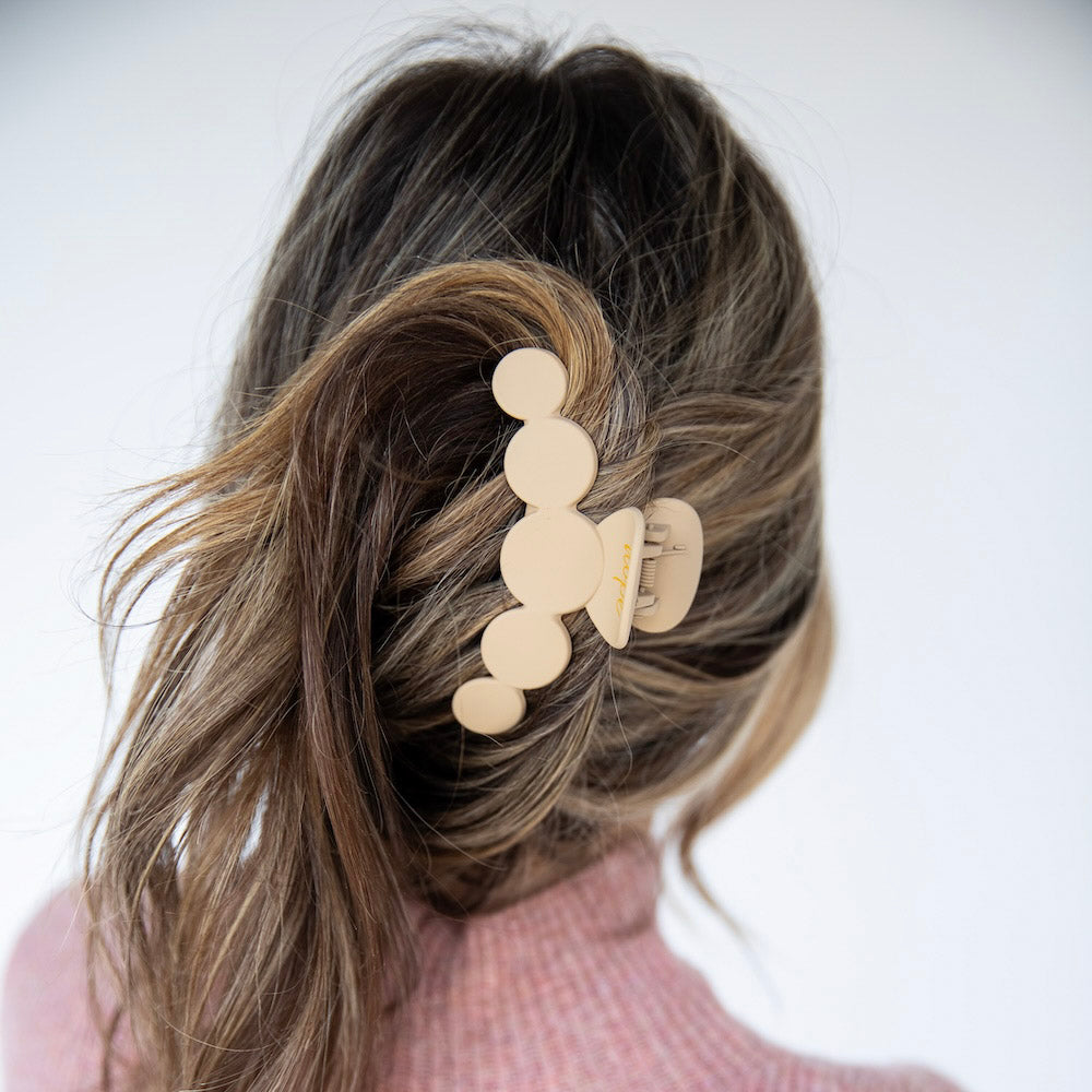 A soft tan neutral that goes with everything. This matte dotted claw clip brings a warm, versatile touch to any hairstyle. The comfortable grip keeps your hair in place while the matte finish adds effortless, everyday luxury to your routine.