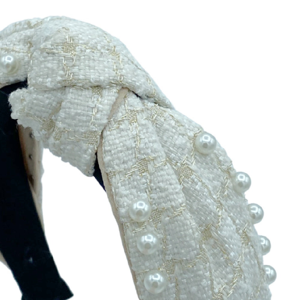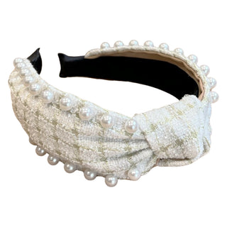 Canaliza tu Audrey Hepburn interior con esta elegante diadema de pata de gallo y perlas. Nos encanta el estilo de nudo superior y te hará sentir como Desayuno en Tiffany's cuando lo uses. ¡También disponible en negro!