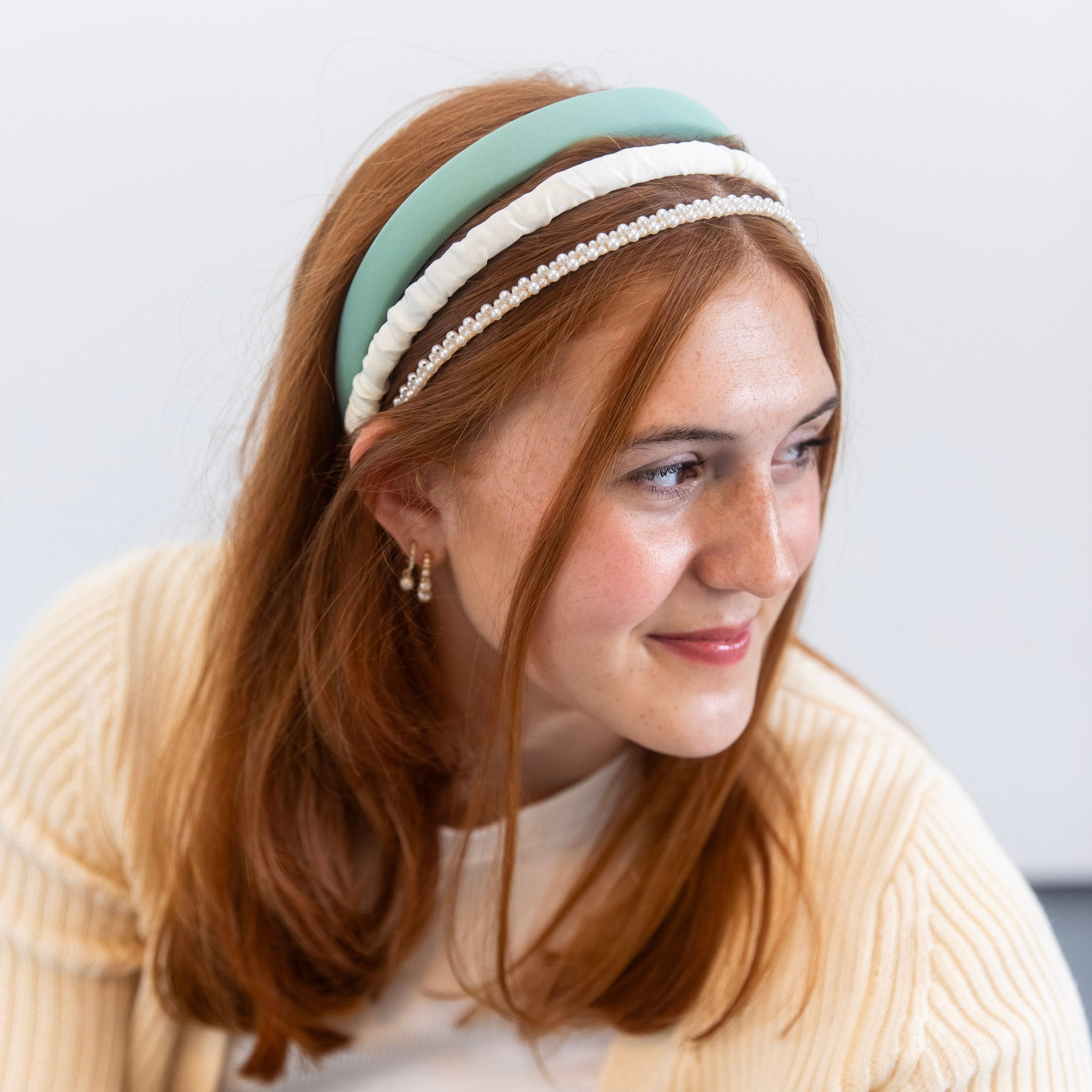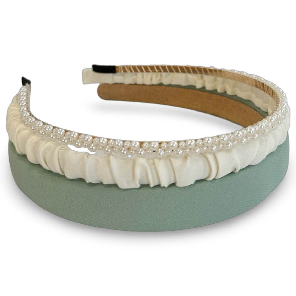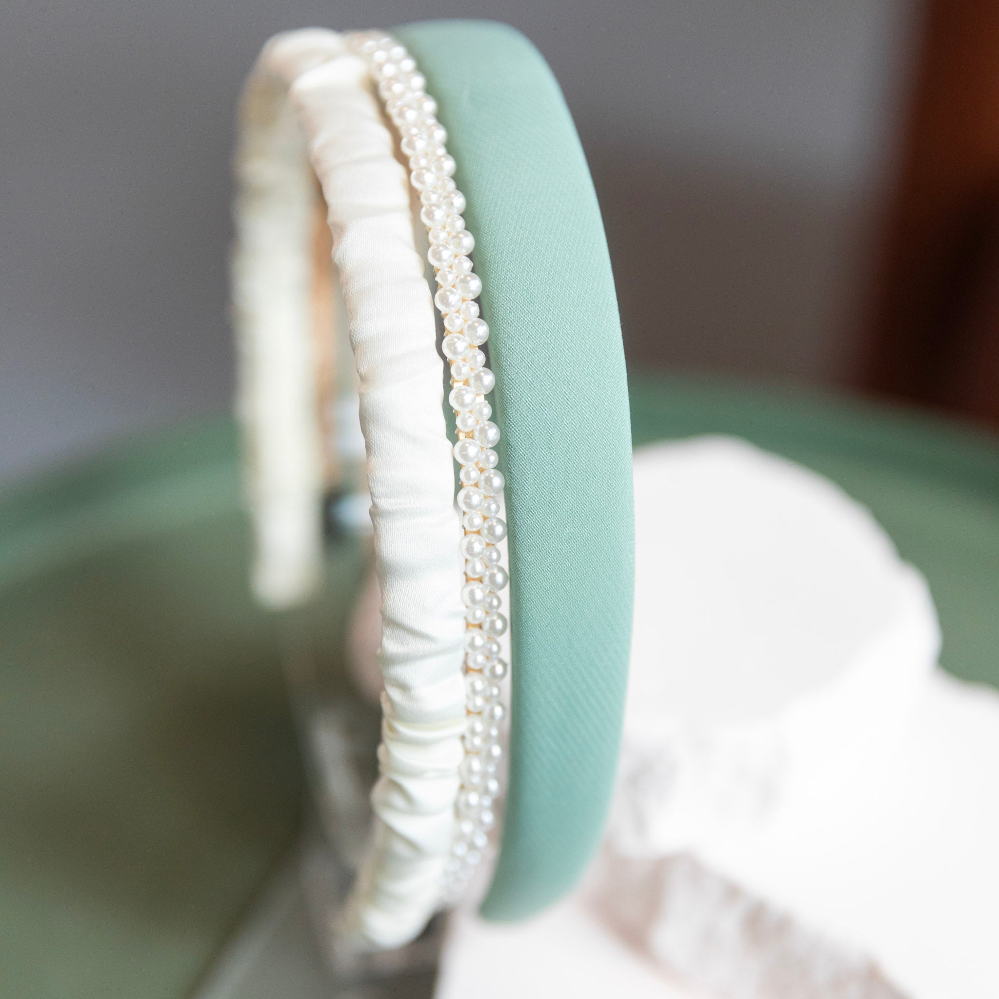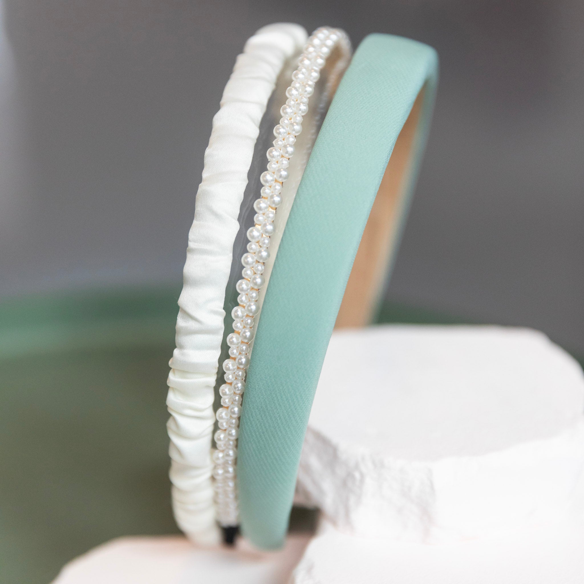 This Classic Headband Set in Green, Cream, and Pearl offers versatility and style in one. Wear all three headbands together for a statement look, or separate them for a more subtle style. With different widths, you can easily switch between a classic or trendy look. Never compromise on style with this timeless set.