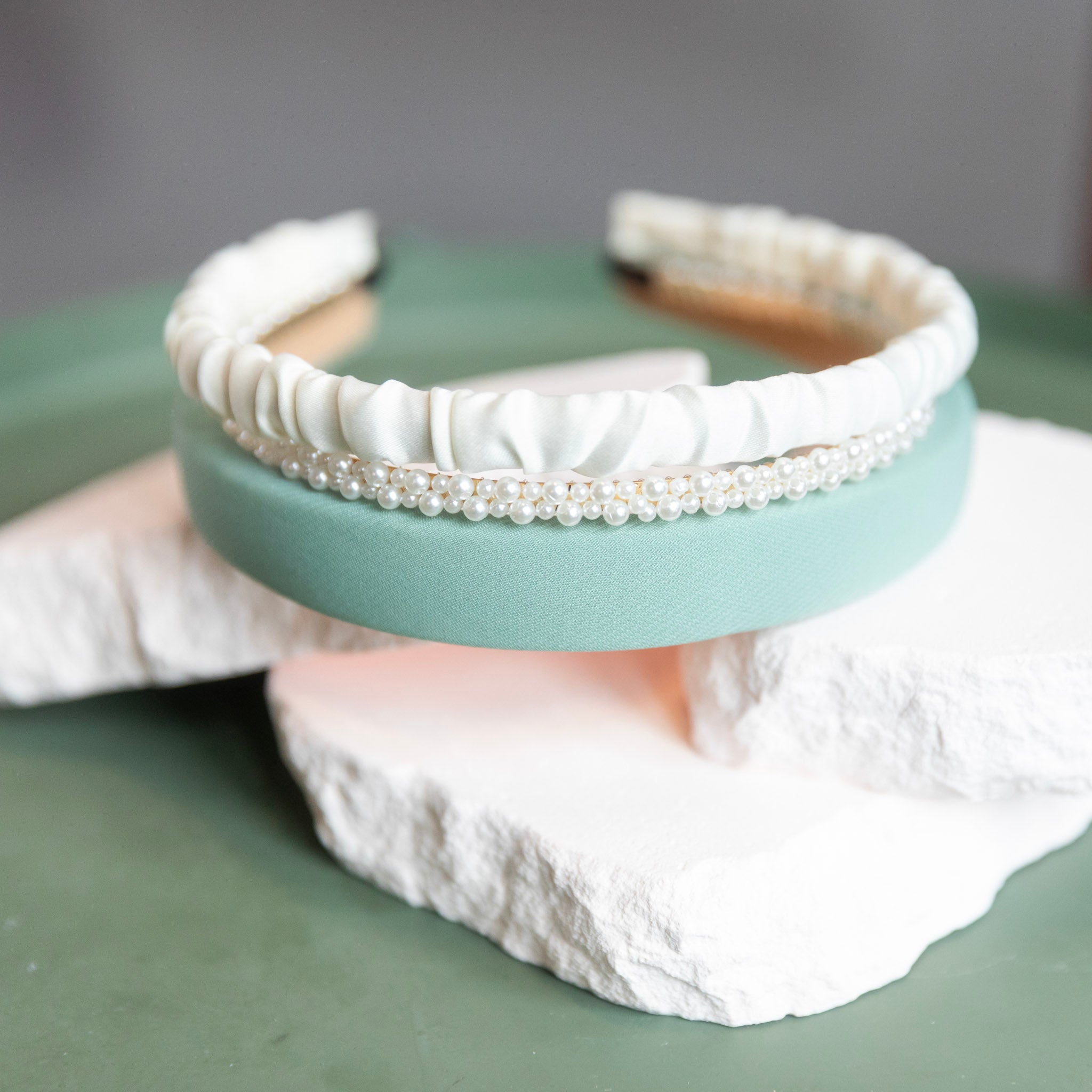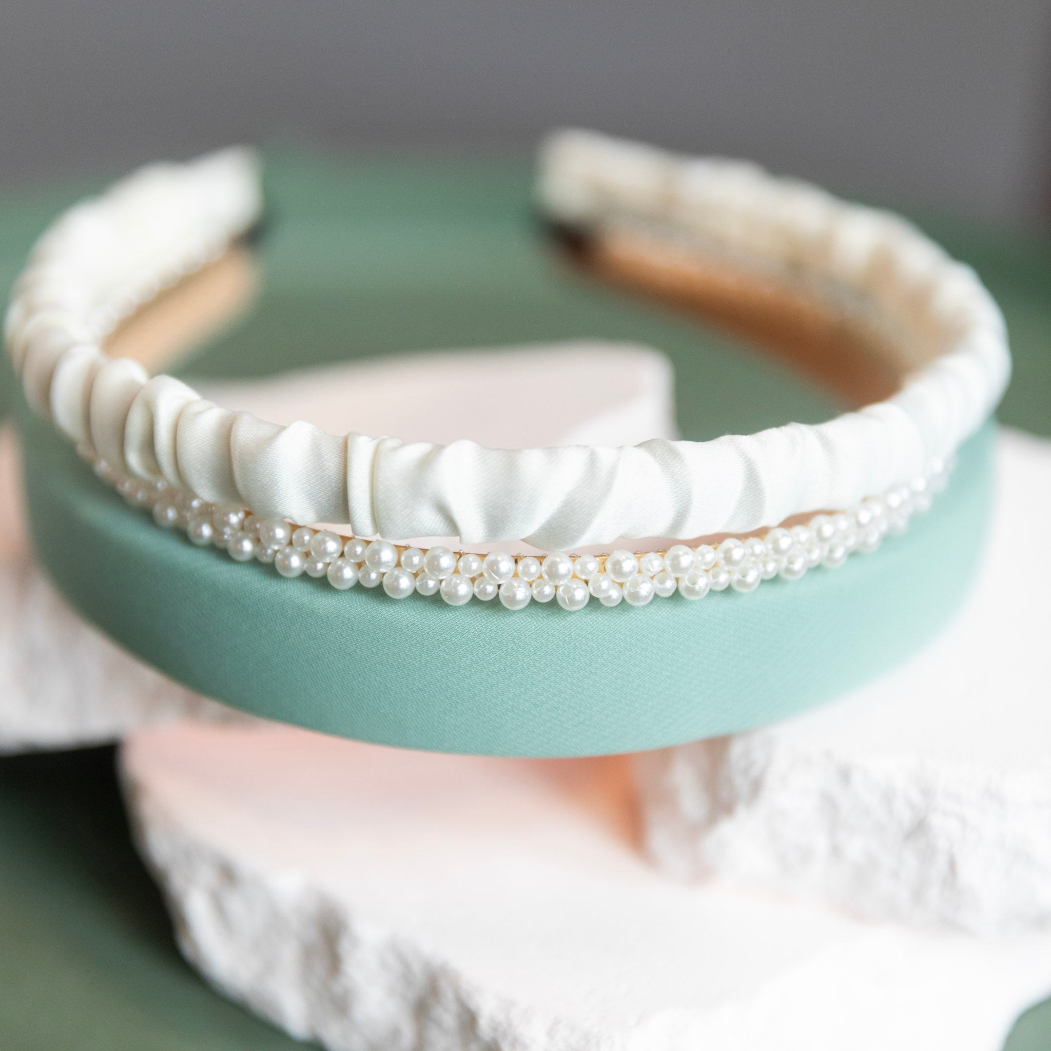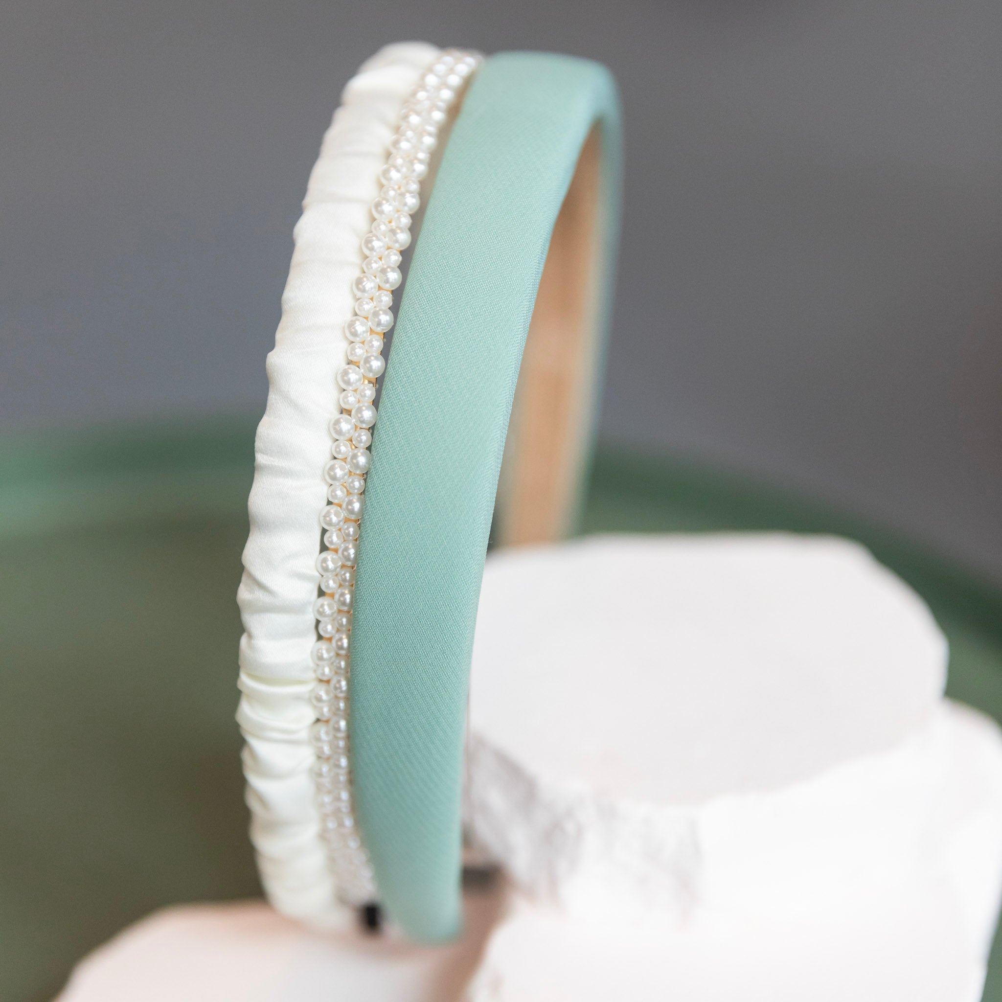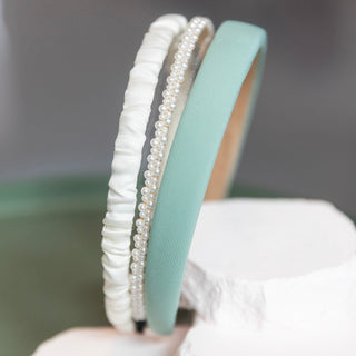 This Classic Headband Set in Green, Cream, and Pearl offers versatility and style in one. Wear all three headbands together for a statement look, or separate them for a more subtle style. With different widths, you can easily switch between a classic or trendy look. Never compromise on style with this timeless set.