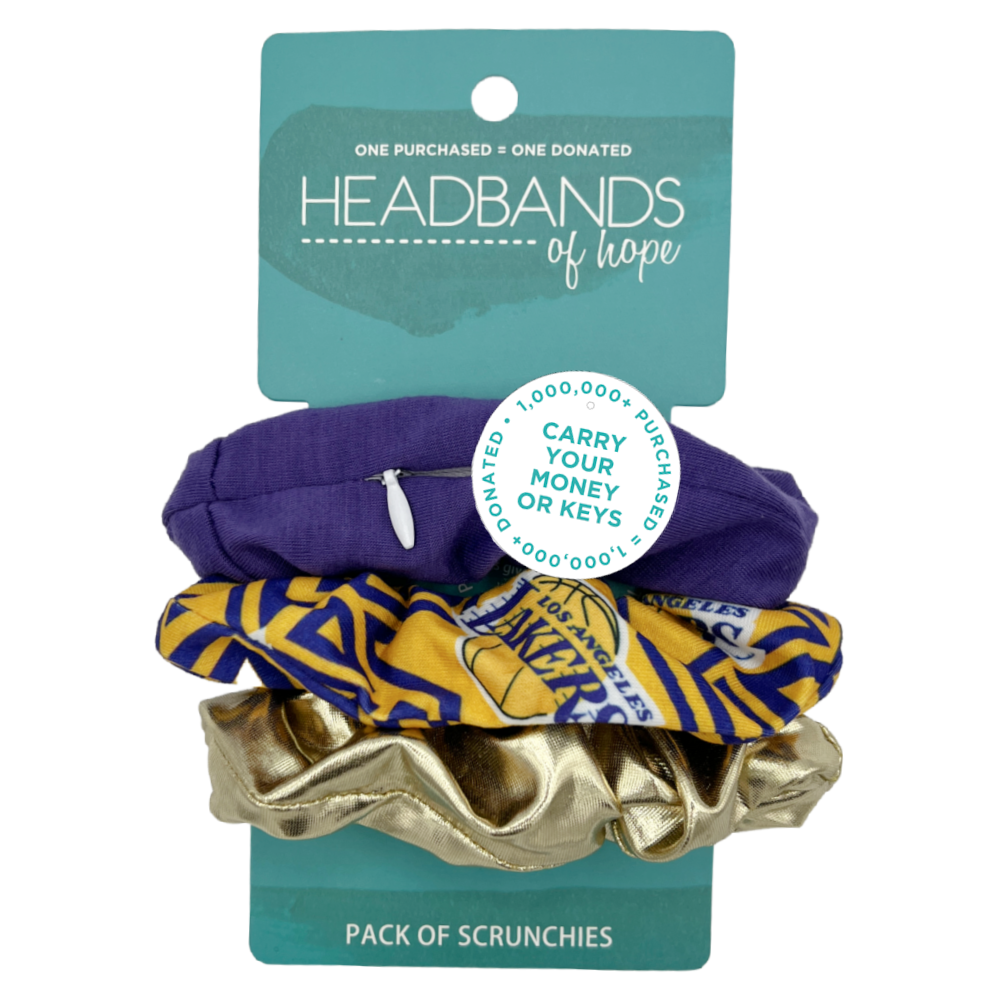 ¿Buscas un lugar para guardar tus cosas cuando vas a un partido? ¡Estos coleteros tienen un bolsillo con cremallera súper secreto en el interior! Guarda tus llaves, lápiz labial, dinero en efectivo y más en tus coleteros con cremallera NBA + Heads of Hope para los LA Lakers. Puedes llevarlos en moño, coleta, con el pelo medio recogido o como pulsera en la muñeca. Este paquete de coleteros incluye tres patrones; oro metálico, estampado de logotipo y morado sólido. Más, Por cada artículo vendido, se donará una diadema de la NBA al Hospital St. Jude. ¡Dé el regalo que sigue dando!