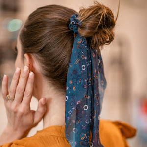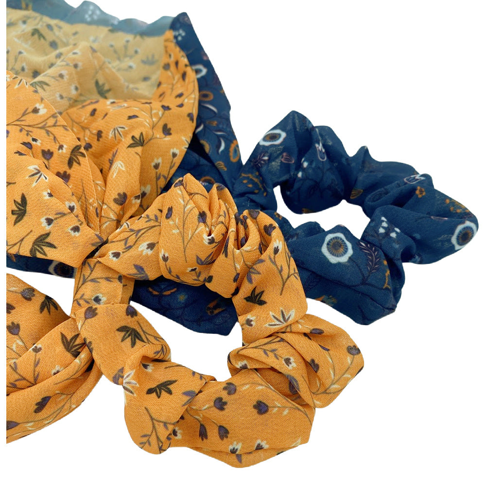 F-A-L-L in love with our darling scrunchies. Whether you style an updo or half up half down, our floral scrunchies are perfect for adding a little dazzle and dimension to those everyday hairstyles.