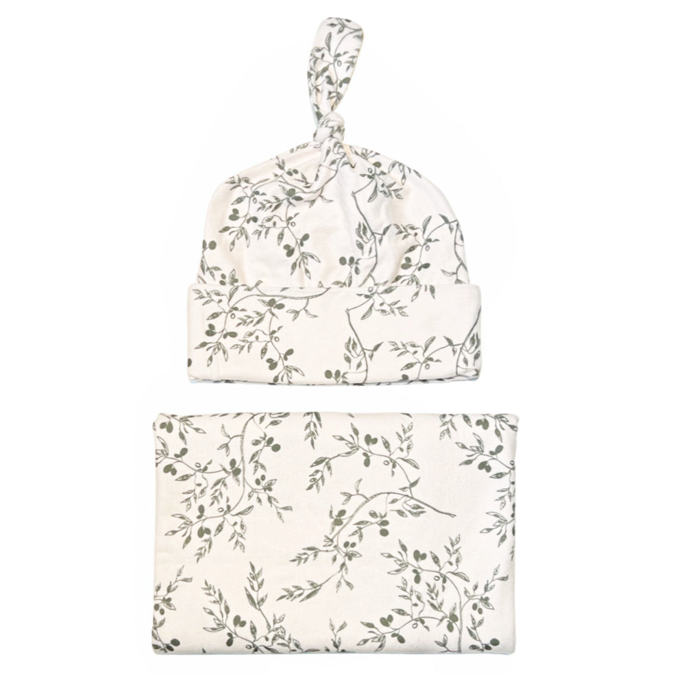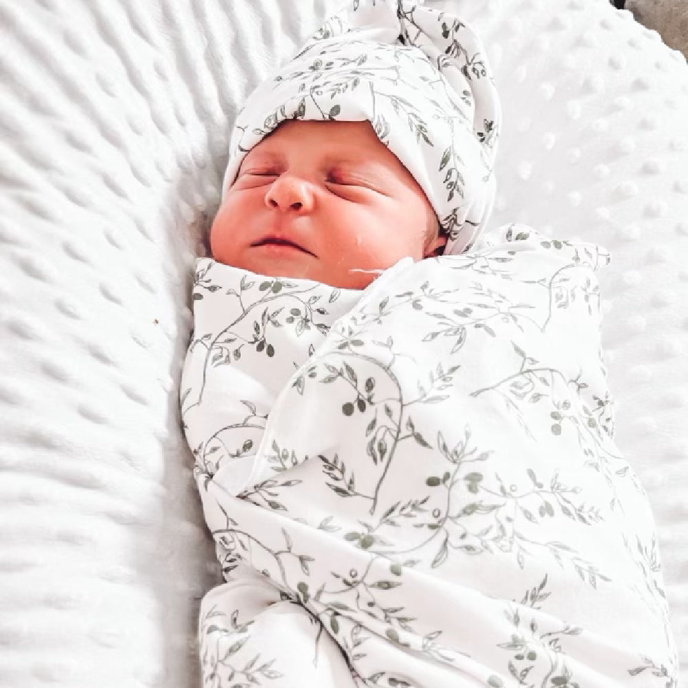 Welcome your little bundle of joy in style with this Olive Branch swaddle and matching hat set. Perfect for any mom expecting a boy or girl, this best-selling print will keep them comfy and cozy, while still keeping them looking chic and stylish. It may be a baby, but their fashion sense is on point!