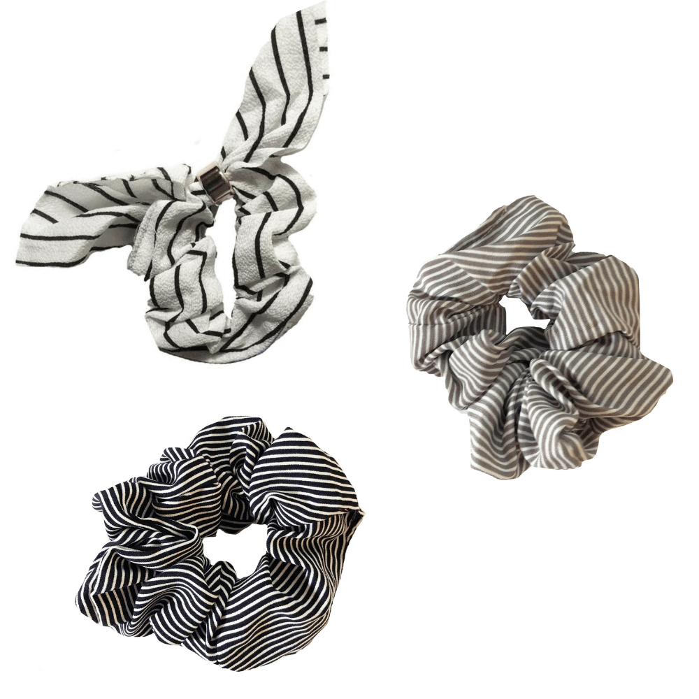 Black, White, Taupe Striped Scrunchie Set