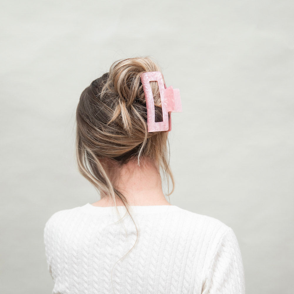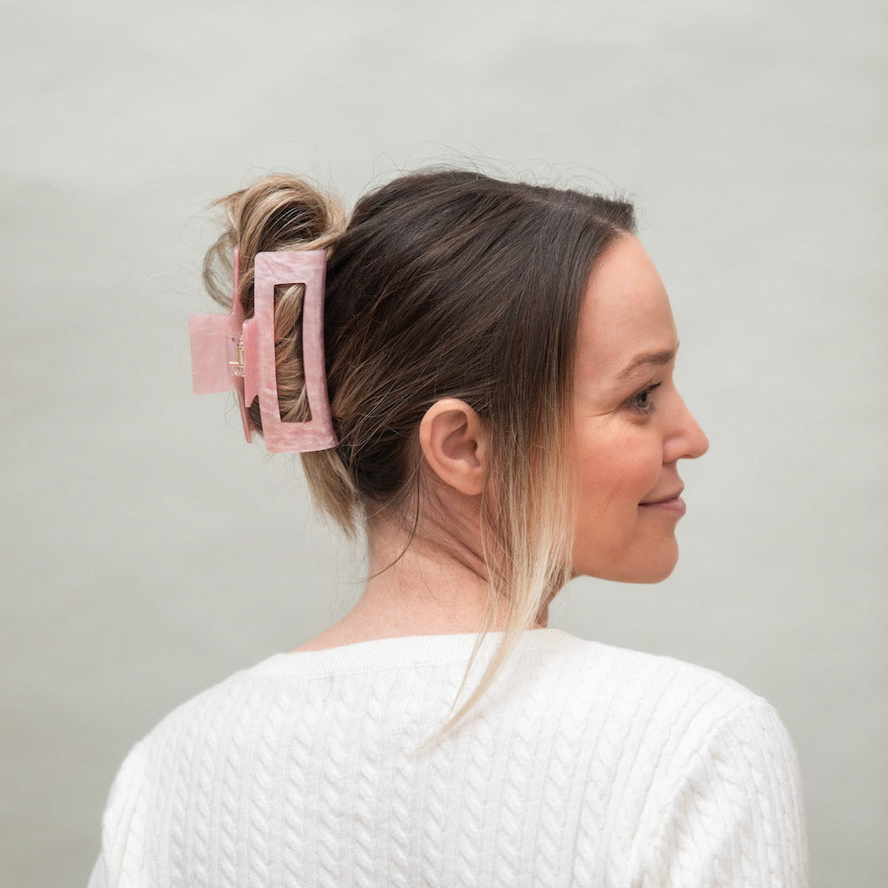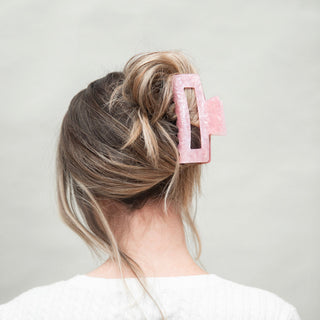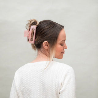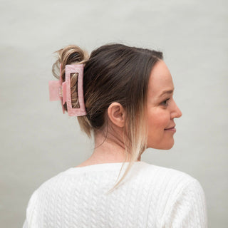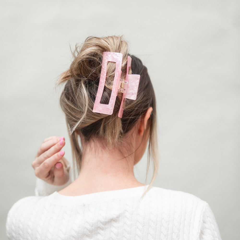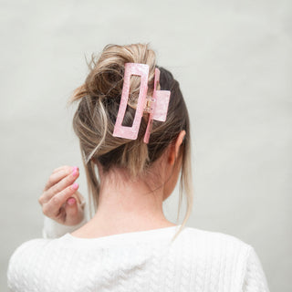 Elevate your hair game with our Large Rectangle Claw Clip in Pink! The fun pearlescent design adds a touch of glam to any hairstyle. Suitable for all hair types, it provides a secure hold to prevent breakage and damage. Say goodbye to traditional hair ties and hello to effortless style!