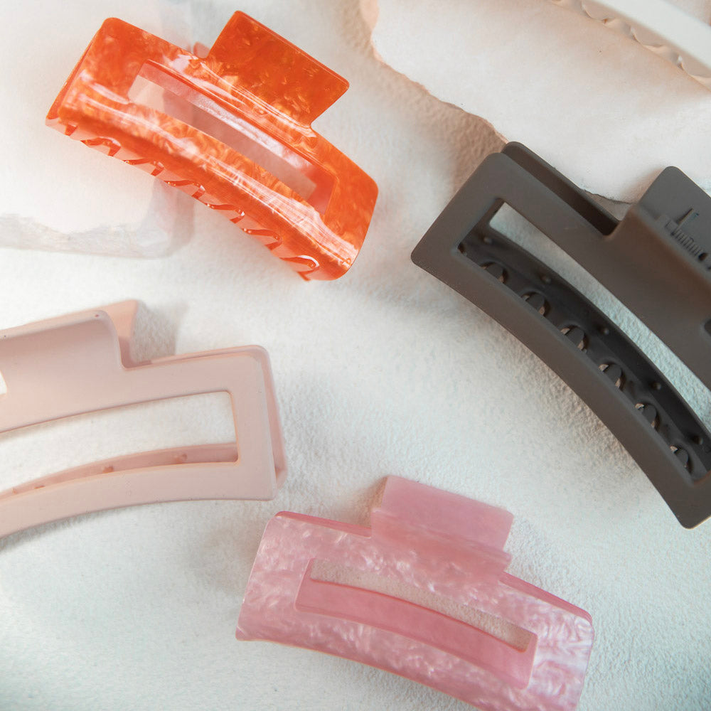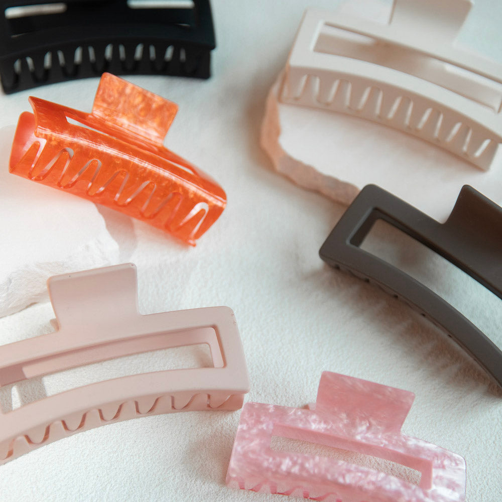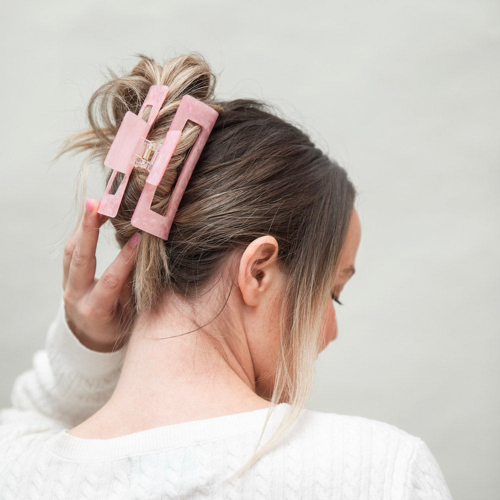 Elevate your hair game with our Large Rectangle Claw Clip in Pink! The fun pearlescent design adds a touch of glam to any hairstyle. Suitable for all hair types, it provides a secure hold to prevent breakage and damage. Say goodbye to traditional hair ties and hello to effortless style!