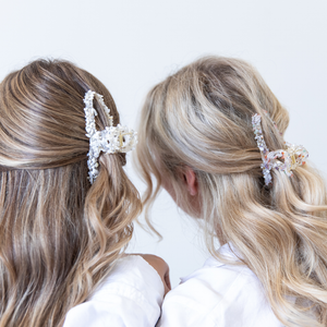 If you love our glitter headbands, you will LOVE our glitter clips! Unlock the 🔑 to 🤩 fabulous hair days 🌞 with the Looped Claw Clip - White Glitter! 🤩 Every outfit 👗 you put together will be elevated to its sparkliest potential! 🤩
